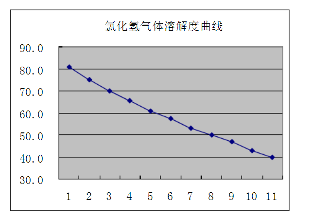 我們知道氯化氫極易溶于水,在0℃時,1體積的水大約能溶解500體積的氯化氫。下面是氯化氫氣體在水中隨溫度(Y軸)不同而變化的溶解度曲線。