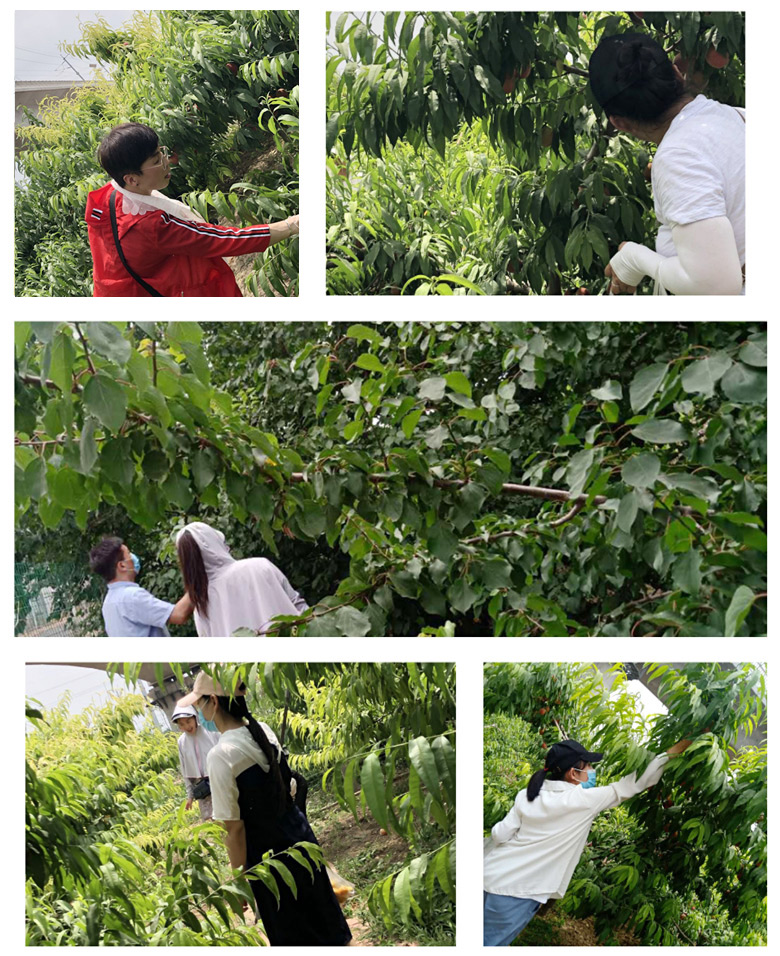 鶯鶯燕燕聽歌語,葡萄樹下好納涼。院前,濃密的葡萄藤蜿蜒盤旋,高大的柳樹、低垂的枝丫掩映著池塘的翠綠,游魚突然間潛到深處,似乎想要探尋這片綠的源頭。循著整齊的磚石小徑,快步踏入這片桃園。小伙伴們似乎早已安耐不住四散開來,各自尋找吸引自己的果香源頭。