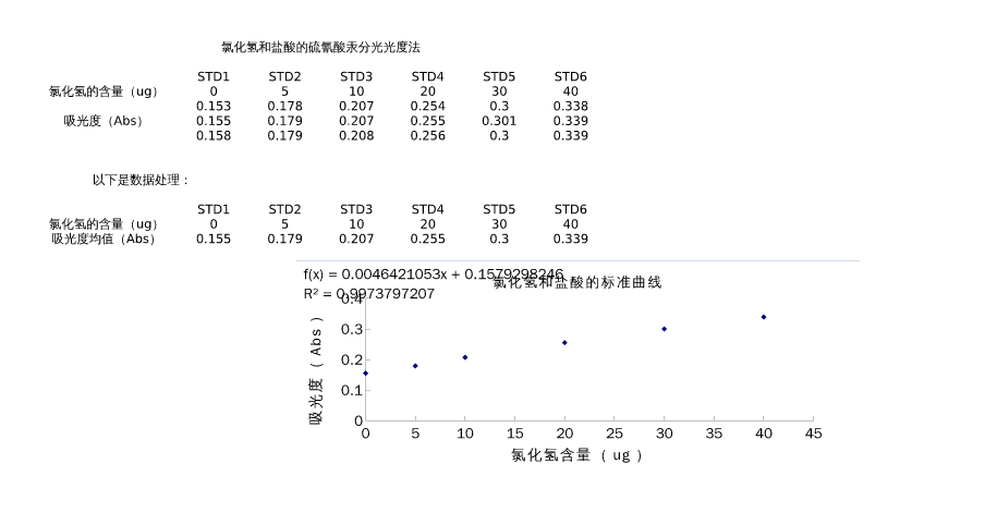 氯化氫的標準曲線