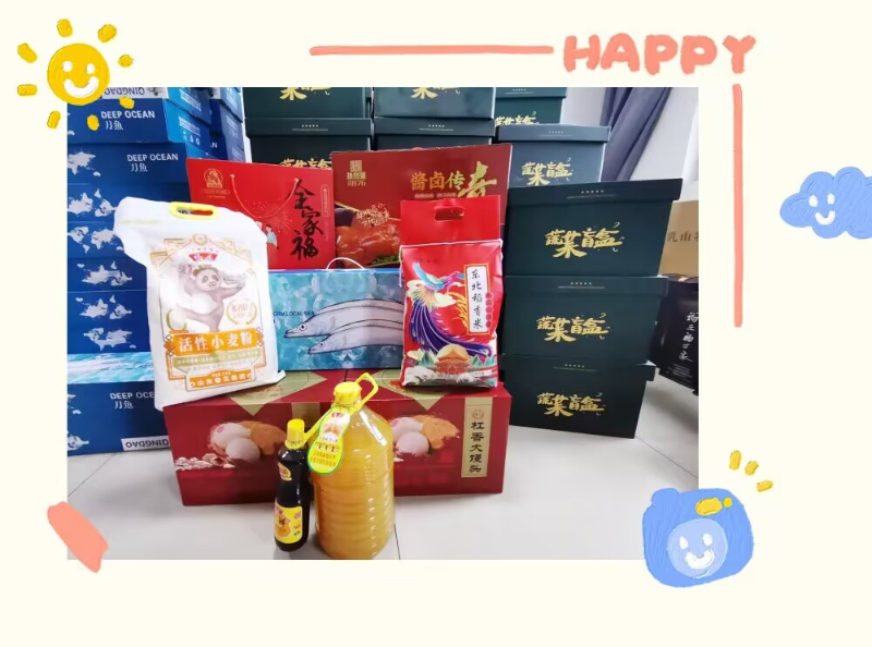 種類豐富的調(diào)味品、精制的大米與面粉、色彩繽紛的花饃、香氣四溢的鹵肉、醇香的美酒、新鮮的蔬菜,肥美的刀魚……一件件的禮品拿在手里沉甸甸的,大家的臉上洋溢著喜悅的笑容,心里暖洋洋的。大家拿到手中的不僅僅是一份新年福利,也是言赫對所有家人們一年來付出的感謝,更是言赫對家人們濃重的關(guān)愛與祝福。