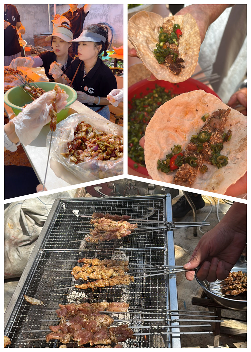 短暫的休整欣賞過后,迎來了令人期待的自助野炊。本次午餐,大家自己動手,言赫小伙伴們分工協(xié)作,清洗瓜果蔬菜、切肉穿肉、生火烤肉,配合默契。炭火噼啪作響,烤肉香氣四溢,瓜果清甜爽口,大家圍坐在一起,分享著美味,暢談著生活與工作,笑聲回蕩在山谷之間。